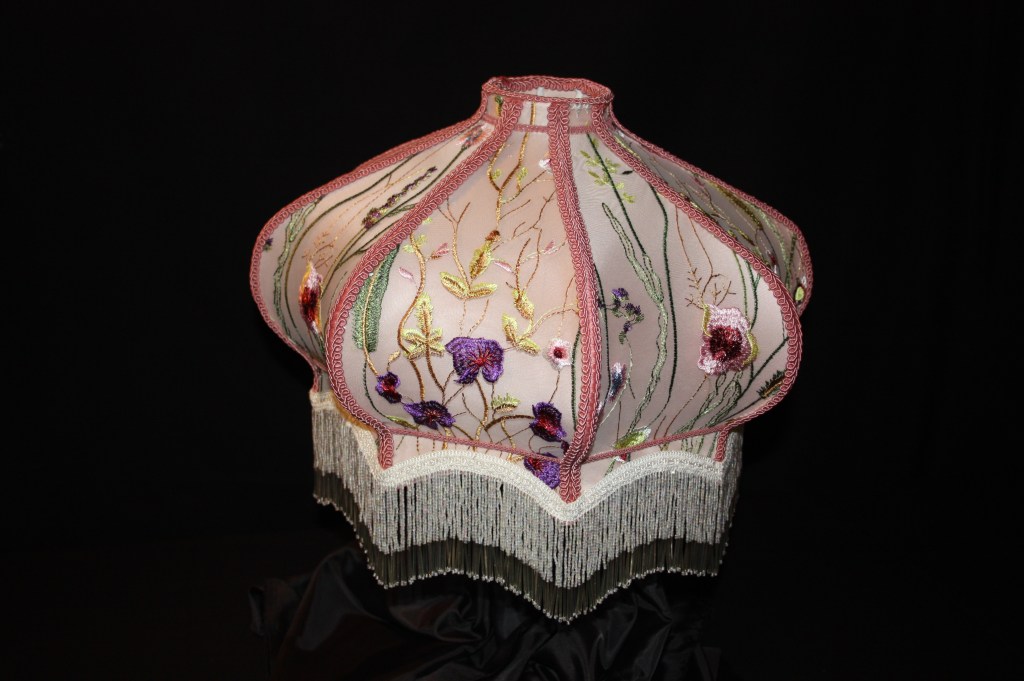 L’abat-jour Victoria est une pièce unique réalisée sur une carcasse de forme victorienne, idéale pour sublimer un intérieur élégant et intemporel. Fabriqué à la main, il associe deux couches de tissus haut de gamme: un satin raffiné et un tulle brodé de motifs fleuris violets et verts, pour un rendu délicat et luxueux. Les finitions- galons vieux rose et franges perlées blanches- renforcent son style romantique et sophistiqué. Une création d’exception nécessitant 20 heures de travail artisanal.